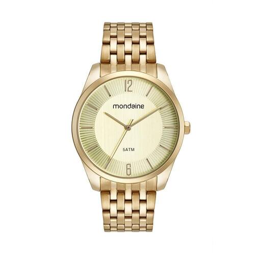 Relógio Mondaine Feminino Ref: 32579Lpmvde1 Casual Dourado O Relógio Mondaine Feminino Ref: 32579Lpmvde1 Casual Dourado é perfeito para mulheres que buscam estilo e sofisticação. Com caixa de metal e pulseira de aço, esse relógio possui um design elegante que combina com qualquer ocasião. Seu vidro de cristal mineral é resistente a riscos, garantindo durabilidade e qualidade. Esse relógio possui um fundo rosqueado, o que o torna mais seguro e resistente à água. Com resistência de até 5 ATM, você pode usá-lo tranquilamente durante atividades do dia a dia, como lavar as mãos ou tomar chuva leve. Com um diâmetro de caixa de 40.00 MM, esse relógio tem um tamanho ideal para mulheres que preferem um modelo mais discreto. Sua função é analógica, permitindo que você acompanhe as horas de forma precisa e confiável. O maquinário desse relógio é alimentado por bateria, proporcionando longa vida útil e praticidade. Seu mostrador champanhe com números é elegante e de fácil leitura. Além disso, o Relógio Mondaine Feminino Ref: 32579Lpmvde1 Casual Dourado possui de 1 ano, garantindo a qualidade e confiança da marca Mondaine. Compre agora mesmo o Relógio Mondaine Feminino Ref: 32579Lpmvde1 Casual Dourado e tenha um acessório de estilo e qualidade em seu pulso. 1. Qual é o material da caixa e da pulseira do relógio? R: A caixa é feita de metal e a pulseira é de aço. 2. Esse relógio é resistente à água? R: Sim, esse relógio é resistente à água até 5 ATM. 3. Qual é o tamanho da caixa do relógio? R: O diâmetro da caixa é de 40.00 MM. 4. Qual é a função desse relógio? R: A função desse relógio é analógica. 5. Como é alimentado o maquinário desse relógio? R: O maquinário desse relógio é alimentado por bateria. 6. Esse relógio possui ? R: Sim, esse relógio possui de 1 ano.