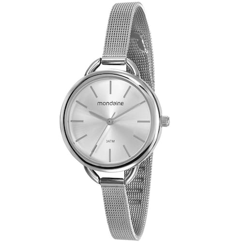 Relógio Feminino Malha de Aço Prata: Elegância Monocromática e Delicadeza Descubra a sofisticação sutil com o Relógio Feminino Malha de Aço Prata. Super delicado e com um visual monocromático que exala elegância, este acessório é perfeito para a mulher que busca um toque charmoso para seus looks, do casual ao mais sofisticado. Design Minimalista e Caimento Perfeito Este relógio é coberto por uma impecável folheação prata, que confere um brilho discreto e moderno. Sua pulseira bem fina em malha de aço não apenas adiciona um toque de leveza e fluidez, mas também proporciona o caimento ideal para pulsos mais finos, envolvendo-os com conforto. O visor com marcadores minimalistas reforça o design clean e sofisticado, garantindo uma leitura clara e um visual atemporal. Versatilidade para Todas as Ocasiões Com seu design pequeno e elegante, o Relógio Feminino Malha de Aço Prata é o acessório versátil que faltava em sua coleção. Ele transita facilmente entre o dia a dia e eventos especiais, adicionando um toque de refinamento discreto a qualquer produção. Especificações Técnicas: ATM - Pressão Máxima: 3 ATM (Resistente a respingos e chuva, não indicado para mergulho). Conteúdo da Embalagem: Relógio/Manual/Certificado Altura (MM): 9 mm Comprimento do Relógio (CM): 21 cm Número Elos Removíveis: 0 (ajuste perfeito pela pulseira de malha) Alarme: Não Tamanho da Caixa: 32mm (equivalente a 3,2 cm) Tamanho do Vidro: 26 mm Largura da Pulseira (MM): 10 mm Garantia: 1 Ano Referência: 53612L0MVNE2