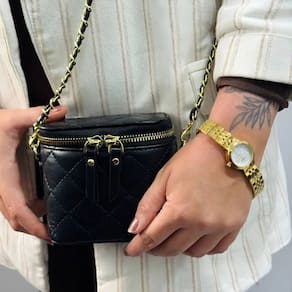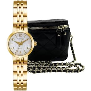 Relógio Mondaine Feminino Mini Dourado: Delicadeza e Versatilidade em Um Só Kit Conheça o Relógio Mondaine Feminino Mini Dourado 99817LPMVDE1, o acessório perfeito para a mulher que busca sofisticação com um toque de modernidade. Com um design clássico e elegante, este kit é ideal para quem aprecia a combinação entre funcionalidade e estilo, além de ser uma excelente opção de presente. Charme e Elegância em Cada Detalhe Este relógio feminino Mondaine dourado possui uma caixa redonda de 23mm em metal, que exala um acabamento refinado. A pulseira em aço dourado, com tons dourados brilhantes, é o grande destaque, conferindo versatilidade e permitindo que o relógio combine facilmente com diferentes joias e estilos de roupa, do casual ao mais sofisticado. Seu Relógio Sempre Protegido com Estilo Um dos grandes diferenciais deste kit é a mini bolsa preta com alça de corrente, super estilosa e funcional. Ela não só serve como um acessório de moda charmoso, mas também funciona como um estojo prático e sofisticado para guardar ou transportar seu relógio com segurança, protegendo-o de riscos e danos. Durabilidade e Especificações Técnicas Pensado para o seu dia a dia, o Relógio Mondaine Feminino Mini Dourado oferece resistência e qualidade. Resistência à Água: Com 5 ATM, é resistente a respingos e chuva leve, ideal para o uso cotidiano. Altura (MM): 8mm Comprimento do Relógio (CM): 19 cm Número de Elos Removíveis: 8 (para um ajuste perfeito ao pulso) Tamanho da Caixa: 23mm Largura da Pulseira (MM): 12 mm Garantia: 1 Ano Adquira o Relógio Mondaine Feminino Mini Dourado com Mini Bolsa e adicione um toque de classe e versatilidade aos seus acessórios!
