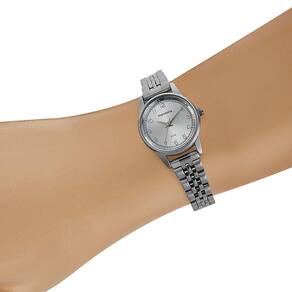 Características Formato do Relógio: Redondo Composição do Vidro: Cristal mineral Material da Caixa: Metal Cor da Caixa: Prata Cor do mostrador: Prata Material da Pulseira: Aço Inox Cor da Pulseira: Prata Mecanismo: Analógico Quartz