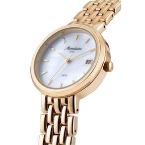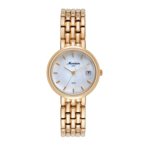 Mostrador Estilo Madreperola Branca e inscrição Mondaine 1954
