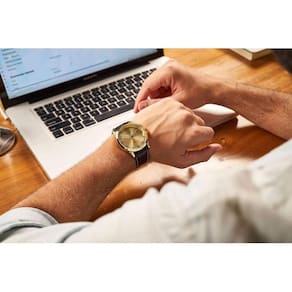 Relógio Mondaine Masculino 99517GPMVDH1 Couro Este relógio contém visor champagne e caixa de metal dourado com função analógico. A pulseira trabalhada em material sintético preto, possui fecho por fivela. Esse relógio possui a caixa em 3,9 cm de tamanho.