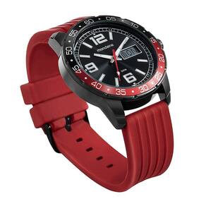 Características Formato do Relógio: Redondo Composição do Vidro: Cristal mineral Material da Caixa: Aço Inox Cor da Caixa: Preto, Vermelho Cor do mostrador: Preto Material da Pulseira: Borracha Cor da Pulseira: Vermelho Mecanismo: Analógico digital