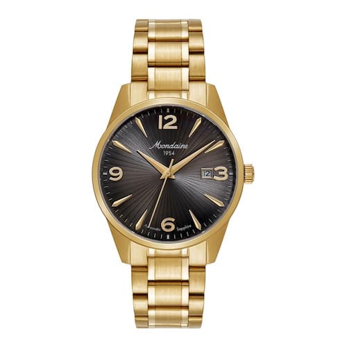 Mostrador Grafite com Números e Inscrição Mondaine 1954 (Logo Clássica da marca)