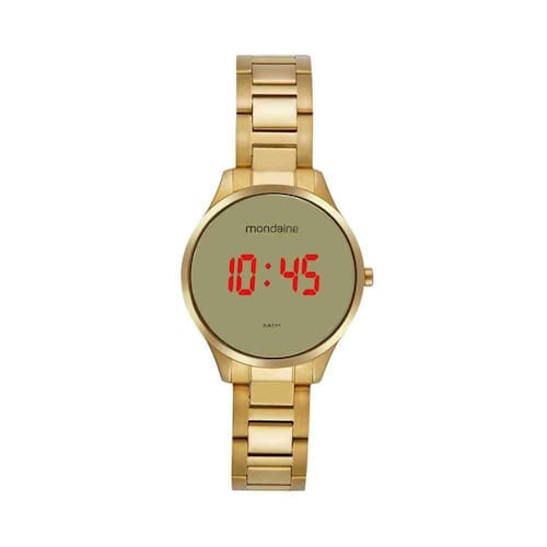Estamos há mais de 50 anos no mercado oferecendo uma ampla variedade de acessórios, incluindo relógios e óculos de sol, com as melhores marcas e estilos. Além disso, a nossa equipe é treinada para oferecer um atendimento excepcional, garantindo que cada cliente seja tratado com o respeito e a atenção que merece.Realizando a compra, não deixe de nos avaliar Sua opinião é muito importante para aperfeiçoar cada vez mais o nosso trabalho.ESPECIFICAÇÕES TÉCNICAS- Marca: Mondaine- Linha: Newness- Referência: 32845LPMVDE1- Gênero: Feminino- Tipo de formato: Redondo - Tipo de mostrador: Digital- Funções: Alarme; Iluminação; Formato 12/24h- Tipo de fecho: Acionamento Lateral- Características gerais: Fundo posterior ; Visor em Cristal Mineral - Cor da caixa: Dourado- Cor do mostrador: LCD positivo - Cor da pulseira: Dourado - Material da caixa: Metal- Material da pulseira: Aço- Largura da caixa: 3,2cm- Espessura da caixa: 1cm - Comprimento do relógio: 21cm - Largura da pulseira: 1,4cm - Resistência à água: 5 ATM 50m - : 12 meses