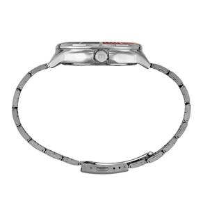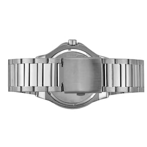Com um mostrador analógico e a função de calendário, este relógio é prático e funcional. Seu fecho dobrável garante segurança e conforto durante o uso. A caixa prata e a pulseira também em prata, ambos em aço, conferem um visual sofisticado e versátil.