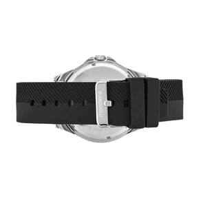 O Relógio Mondaine Prata Preto Masculino 32574G0Mvni2 possui um design elegante e discreto, com caixa prata e mostrador preto. A pulseira é feita de silicone, proporcionando conforto e durabilidade. A largura da caixa é de 4,8 cm e a largura da pulseira é de 2,2 cm. O comprimento total do relógio é de 25 cm.