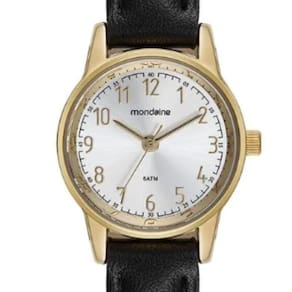 Estamos há mais de 50 anos no mercado oferecendo uma ampla variedade de acessórios, incluindo relógios e óculos de sol, com as melhores marcas e estilos. Além disso, a nossa equipe é treinada para oferecer um atendimento excepcional, garantindo que cada cliente seja tratado com o respeito e a atenção que merece.Realizando a compra, não deixe de nos avaliar Sua opinião é muito importante para aperfeiçoar cada vez mais o nosso trabalho.ESPECIFICAÇÕES TÉCNICAS- Marca: Mondaine - Referência: 32714LPMKDH3- Gênero: Feminino - Tipo de mostrador: Analógico - Tipo de movimento: Quartzo - Tipo de fecho: Fivela - Cor da caixa: Dourado - Cor do mostrador: Prata - Cor da pulseira: Preto - Material da caixa: Metal - Material da pulseira: material sintético - Espessura da caixa: 2,5cm - Comprimento do relógio: 2,2cm - Largura da pulseira: 1,0cm - Resistência à água: 5 ATM 50m - : 12 meses