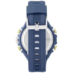 Relógio Action, que conta com caixa de polímero e pulseira de poliuretano na cor azul, aro na cor prata, e mostrador com display de LCD positivo. Além disso, ele apresenta indicador diário, mensal e semanal, aviso sonoro de hora em hora, temporizador, alarme, cronômetro, segunda zona de horário e luz noturna para auxílio em ambientes escuros. Com resistência à água de 100 metros, é o relógio ideal para te acompanhar em qualquer momento.