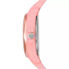 Características Formato do Relógio: Redondo Composição do Vidro: Acrílico Material da Caixa: Resina Cor da Caixa: Rosa Cor do mostrador: Rosa Material da Pulseira: Resina Acrílica Cor da Pulseira: Rosa Mecanismo: Analógico Quartz