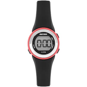 Características Formato do Relógio: Redondo Composição do Vidro: Acrílico Material da Caixa: Resina Cor da Caixa: Rosa Cor do mostrador: Digital Material da Pulseira: Resina Acrílica Cor da Pulseira: Preto Mecanismo: Analógico-Digital