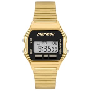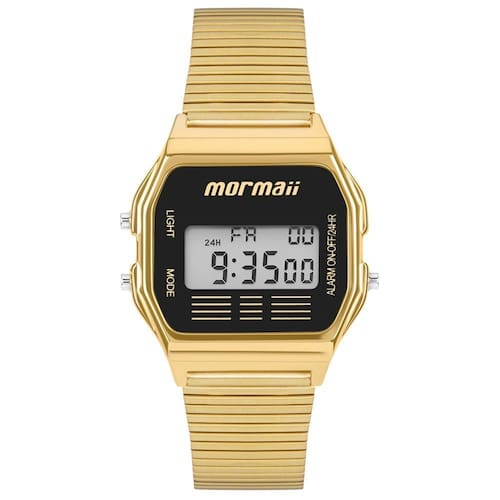 O Relógio Mormaii Feminino Vintage Dourado - MOJH02AJT/4P traz o charme retrô dos clássicos digitais em uma versão moderna e sofisticada. Com acabamento em dourado e mostrador preto, o modelo se destaca pela elegância e versatilidade, sendo perfeito para compor tanto looks casuais quanto produções mais refinadas.