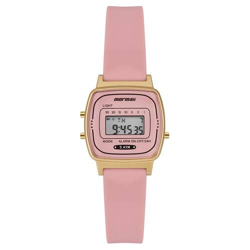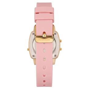 Relógio Acqua NXT conta com um design inovador e cheio de estilo. Com caixa de 30mm na cor dourada, feita de polímero, e pulseira de silicone cor-de-rosa, o relógio conta com várias funcionalidades, como cronômetro, alarme, luz noturna e display digital de fácil leitura. Além disso, seu mostrador é de LCD positivo e conta com a resistência à água de 50 metros.