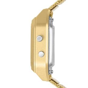 Relógio Vintage apresenta um novo modelo, com pulseira de aço inoxidável em mesh banhado em dourado. A linha traz um relógio único, que apresenta mostrador na cor preto com duas opções de visualização: digital e analógico. Além disso, conta com display com indicação de dia, semana e mês, incluindo alarme e cronômetro. Apresenta resistência à água de 50 metros.