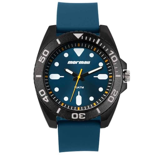 Relógio Mormaii Casual, feito para te acompanhar no dia a dia, não importa o seu estilo! Esportivo e casual, ele vem com uma pulseira azul de silicone, combinando com o mostrador. Possui caixa preta de polímero com 45,5mm, maquinismo analógico e resistência à água de 10 ATM.