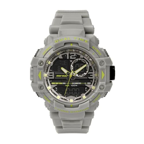 Funções: Anadigi, Alarme, Cronógrafo, Iluminação, Calendário, Timer, Dual Time