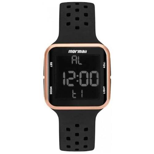 Marca: MormaiiReferência: MO6600/8JGênero: UnissexCor da Pulseira: PretoCor da Caixa: Preto com aro rosêMaterial da Pulseira: SiliconeMaterial da Caixa: PolímeroTamanho da Caixa: 38 mm (largura) x 38 mm (altura) x 12 mm (espessura)Resistência à água: 10 ATM (100 metros)Tipo de Movimento: Digital (Quartz)Características do Vidro: Acrílico