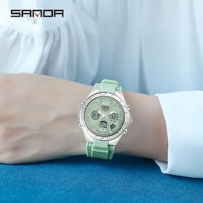 Descubra o Relógio Desportivo SANDA, um acessório elegante e funcional ideal tanto para o uso casual quanto formal. Com mostrador duplo de quartzo e funções avançadas como alarme e cronógrafo, este relógio tem uma estética deslumbrante com sua pulseira em TPU verde menta e caixa de liga de zinco. Seu design moderno e funcional enfatiza esportividade e estilo, tornando-o uma peça essencial para pessoas que buscam praticidade sem abrir mão do charme.