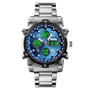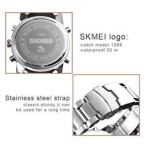 Características do produto Função: 2 horas, cronógrafo, alarme, data, semana, luz LED, relógio de 12/24 horas, contagem regressiva, mostrador criativo moderno, textura excepcional, alça macia, confortável de usar e durável de usar. Cronometragem precisa e boa hora. Esses relógios casuais modernos são muito charmosos para todas as ocasiões. Impermeável: 5 caixas eletrônicos: você pode usá-lo para nadar, lavar as mãos ou entrar na chuva Despertador: você pode configurar o alarme para acordar ou lembre-o de fazer algo importante: formato de 12/24 horas: você pode escolher o formato de 12 ou 24 horas para exibir a hora. Dois mostradores são exibidos modos: um é para exibição da hora normal, o outro é para definir a diferença horária em outro fuso horário Um bom presente para parentes e amigos Especificação Diâmetro do mostrador: 40 mm/1,57 polegadas Espessura da caixa: 11 mm/0,43 polegadas Largura da pulseira: 22 mm/0,87 polegadas Comprimento da pulseira: 250 mm/10,43 polegadas Comprimento do pulso: 150-235 mm/5,91-9,25 polegadas Formato da caixa: quadrado Tipo de fecho: fivela Tipo de material: Material da capa de PU: ABS Note Lifetime à prova d'água (50 metros), não é adequado para atividades subaquáticas de longa duração, como mergulho. Por favor, NÃO PRESSIONE nenhum botão debaixo d'água. Pacote: Relógio esportivo digital masculino × 1 caixa de presente × 1 manual de instruções × 1