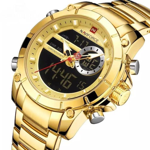 Relogio Naviforce 9163 Dourado Masculino Digital E Analogico