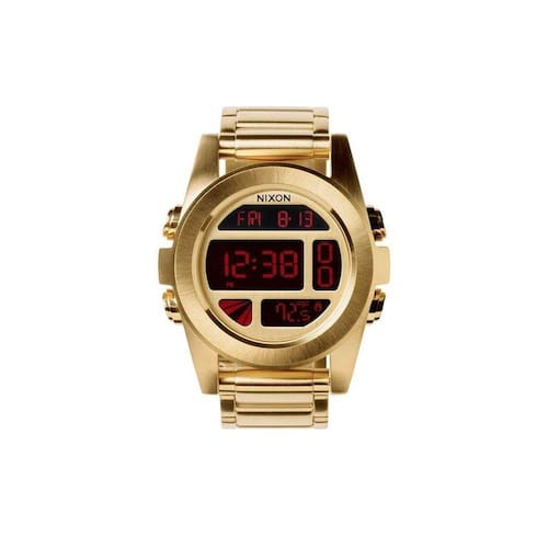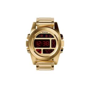 Relógio Nixon Unit SS, com caixa em metal, vidro em cristal mineral endurecido e movimento custom digital com indicador de temperatura, tempo duplo, contagem regressiva, cronômetro, alarme e luz. Pulseira em metal. Caixa com 5cm de altura, 5cm de largura e pulseira com 17cm de comprimento, além de ser resistente à água até 100m. O Relógio Nixon Unit é moderno e ideal para o dia a dia. Acompanha certificado de garantia e manual de instruções.ModeloNIXON UNIT SSCorDOURADOVISOR VERMELHO