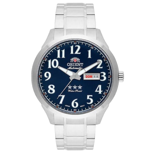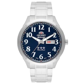 Relógio Orient Masculino 469SS074 D2SX Automatico Gênero: Masculino Visor: Azul Vidro: Cristal Mineral Funções: Analogico: 50M Características: com caixa Aço inoxidável e pulseira Aço Diâmetro da caixa: 44mm Garantia: 1 ano
