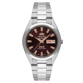 Composição do Vidro: Cristal Mineral Material da Caixa: Aço Inox Cor da Caixa: Prata Material da Pulseira: Aço Inox Cor da Pulseira: Prata Linha: 3 Estrelas Maquina: Automático Fundo da maquina: Aço Inox com Fechamento Rosqueado Mostrador: Fundo Marrom com Marcadores na Cor Rose Funções: Calendário Duplo