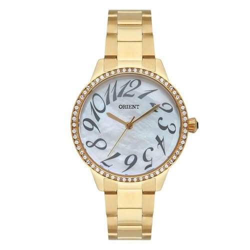 Características - Composição do Vidro: Cristal mineral - Material da Caixa: Aço inox - Cor da Caixa: Dourado - Material da Pulseira: Aço inox - Cor da Pulseira: Dourado