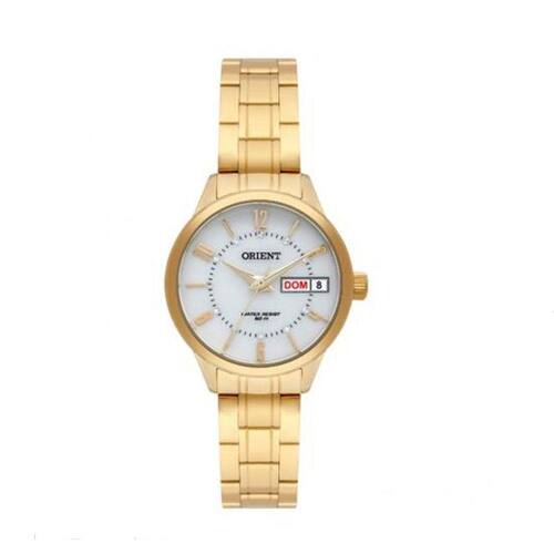 Características do Produto:Relógio Orient Feminino FGSS2004 B2KX Descrição: Marca: Orient Linha:Clássico Gênero:Feminino Tamanho:Medio Formato: Redondo Funções:Calendário,Analógico Composição do Vidro:Cristal Mineral Fundo: prensado Material da caixa: Aço Mostrador:Branco Cor da Caixa:Dourado Cor da Pulseira:Dourado Fecho:Pressão Tampa Posterior: Rosqueada Cora: Simples Peso: 116 Gramas Resistência à Água:5 ATM 50Metros Medidas: Diâmetro da caixa:38mm Largura da Caixa: 40 mm Comprimento da Caixa:22cm Espessura da Caixa: 0,93cm Acompanha Manual Nota Fiscal Embalagem Garantia de 1 ano