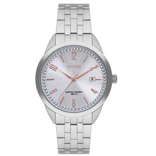 Descrição Relogio Orient feminino prata com números e calendário aço inox FBSS1193 S2SX Medida da caixa: 38 mm (medida sem a coroa) Medida da caixa: 40 mm (medida com a coroa) Espessura caixa: 9,1 mm Peso: 87 gramas Cor da Caixa: Prata Cor da pulseira: Prata Cor do aro: Prata Cor do mostrador: Prata Material da caixa: Aço Inox Material da pulseira: Aço Inox Mecanismo: Analógico Pulseira ajustável: Sim Calendário: Sim Aro interno em cristais: Sim Fundo rosqueado: Sim Vidro: Cristal Mineral Máquina: Quartz (Movido a Bateria) RESISTÊNCIA A ÁGUA: 50m (5atm) Pode lavar as mãos? SIM Pode tomar banho de chuveiro? SIM Pode usar em piscina: SIM