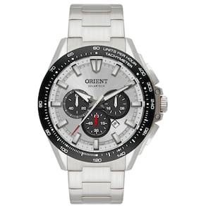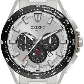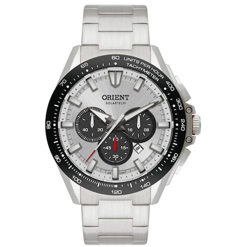 Marca: Orient Referência: MBSSC275 S1SX Gênero: Masculino Cor da Pulseira: Prateada Cor da Caixa: Prateada Material da Pulseira: Aço inoxidável Material da Caixa: Aço inoxidável Tamanho da Caixa: 47 mm Resistência à água: 10 ATM / 100 metros Tipo de movimento: Analógico movido a energia solar Características do vidro: Cristal mineral Funções adicionais: Cronógrafo de 60 minutos, taquímetro, calendário do dia do mês, formato 12/24 horas