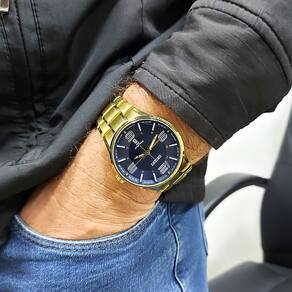 Marca: Orient Modelo: MGSS1136 D2KX Tipo de relógio: Analógico Gênero: Masculino Cor da caixa: Dourado Cor da pulseira: Dourado Estilo: Casual Alarme: Não Cronômetro: Não Calendário: Sim Luz: Não – ponteiros e marcadores fluorescentes Resistência à água: Sim – 5 ATM = 50 metros Tipo de fecho: Dobrável, com trava lateral Material da caixa: Aço IPG Material da pulseira: Aço IPG Características do vidro: Vidro Mineral Tamanho da caixa: 45 mm Espessura da caixa: 10 mm Comprimento da pulseira: 25 cm Largura da pulseira: 22 mm Tampa do fundo: Rosqueado Peso: 138 Gramas Alimentação: Bateria Garantia do Fabricante: 12 meses Fabricante: Orient Relógios da Amazônia LTDA
