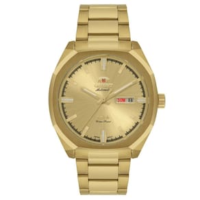 Marca: OrientReferência: NH3GG008 C1KXGênero: MasculinoCor da Pulseira: DouradoCor da Caixa: DouradoMaterial Da Pulseira: Aço InoxidávelMaterial Da Caixa: Aço InoxidávelTamanho da Caixa: 42 mmResistência à água: 50 metros (5 ATM)Tipo de movimento: Automático (Calibre NH36)Características do vidro: Cristal Mineral