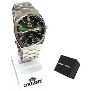 Marca: Orient Modelo: 469SS087F E1SX Tipo de relógio: Analógico Gênero: Masculino Cor da caixa: Prateado Cor da pulseira: Prateado Estilo: Casual Alarme: Não Cronômetro: Não Calendário: Sim Luz: Não – ponteiros fluorescentes Resistência à água: Sim – rotinas diárias Tipo de fecho: Dobrável com trava lateral Material da caixa: Aço Inoxidável Material da Pulseira: Aço Inoxidável Características do vidro: Cristal Mineral Tamanho da caixa: 42 mm Espessura da caixa: 12 mm Comprimento da pulseira: 25 cm Largura da pulseira: 22 mm Tampa do fundo: Rosqueado Peso: 150 Gramas Alimentação: Automático Garantia do Fabricante: 12 meses Fabricante: Orient Relógios da Amazônia LTDA
