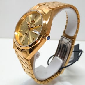 Modelo: 469WC2F C1KXTipo de mostrador: AnalógicoMecanismo: AutomáticoAlimentação: Movimento do pulsoFormato da Caixa: RedondoCor do mostrador: Dourado claro com index e ponteiros na cor douradaCor da caixa: DouradoCor da pulseira: DouradoMaterial do Vidro: Cristal MineralMaterial da caixa: Aço InoxMaterial da pulseira: Aço InoxTipo de Fecho: DobrávelNível de Resistência à Água: 30 mtDiâmetro da caixa: 37 mmEspessura da caixa: 12 mm