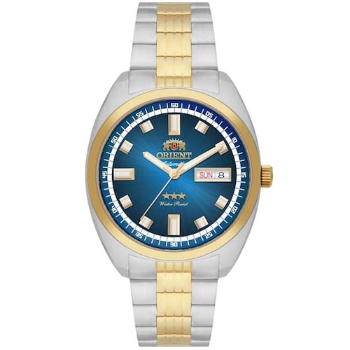 Marca: Orient Referência: YN6TT004 D1SX Gênero: Masculino Cor da Pulseira: Bicolor (prata e dourado) Cor da Caixa: Bicolor (prata e dourado) Material Da Pulseira: Aço Inoxidável Material Da Caixa: Aço Inoxidável com banho IPG (banho dourado) Tamanho da Caixa: 38,5 mm Resistência à água: 100 metros (10 ATM) Tipo de movimento: Automático (Calibre YN6) Características do vidro: Cristal de Safira