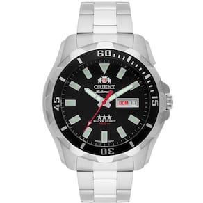 Características Formato do Relógio: Redondo Composição do Vidro: Cristal mineral Material da Caixa: Aço Inox Cor da Caixa: Prata Cor do mostrador: Preto Material da Pulseira: Aço Inox Cor da Pulseira: Prato Mecanismo: Automático-Mecânico