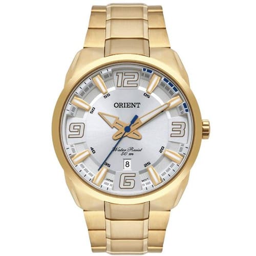 Relogio Orient Masculino dourado e azul de aço inox calendario a prova dagua MGSS1178 S2KX Diâmetro da caixa: 45 mm (medida sem a coroa) Diâmetro da caixa: 48 mm (medida com a coroa) Espessura caixa: 9,9 mm Comprimento pulseira: 21 cm Peso: 145 gramas Garantia: 12 meses em toda a rede de assistências Orient no Brasil Cor da Caixa: Dourado Cor do aro: Dourado Cor do mostrador: Prata com detalhe azul Cor da pulseira: Dourado Material da caixa: Aço inox Material da pulseira: Aço inox Mecanismo: Analogico Calendário: Sim Pulseira ajustavel: Sim Vidro: Cristal Mineral Máquina: Quartz (Movido a Bateria) Tampa do fundo: de rosca RESISTÊNCIA A ÁGUA: 50m Pode lavar as mãos? SIM