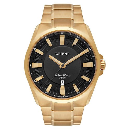 Relógio ORIENT masculino dourado preto MGSS1174 P1KX