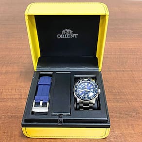 Marca: Orient Modelo: NH3SS003 D1SX Tipo de relógio: Analógico Gênero: Masculino Cor da caixa: Prateado Cor da pulseira: Prateado Estilo: Casual Alarme: Não Cronômetro: Não Calendário: Sim Luz: Não – ponteiros e marcadores fluorescentes Resistência à água: Sim – 30 ATM = 300 metros Tipo de fecho: Dobrável, com trava lateral e trava de segurança Material da caixa: Aço Inoxidável Material da pulseira: Aço Inoxidável Características do vidro: Safira Tamanho da caixa: 47 mm Espessura da caixa: 17 mm Comprimento da pulseira: 25 cm Largura da pulseira: 22 mm Tampa do fundo: Rosqueado Peso: 244 Gramas Alimentação: Automático Garantia do Fabricante: 12 meses Fabricante: Oriente Relógios da Amazônia LTDA