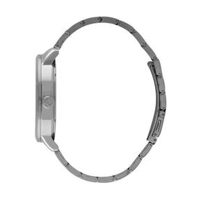 Características - Quartz / Bateria - Coroa: Simples - Tampa posterior : Rosqueado - Resistência à água : 50m - Vidro : Cristal Mineral - Mostrador : Azul com detalhes prateado - Material da caixa : Aço - Material da pulseira : Aço