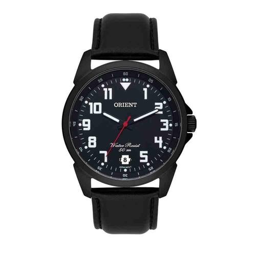 Características: com caixa Aço + IP Black e pulseira em Couro