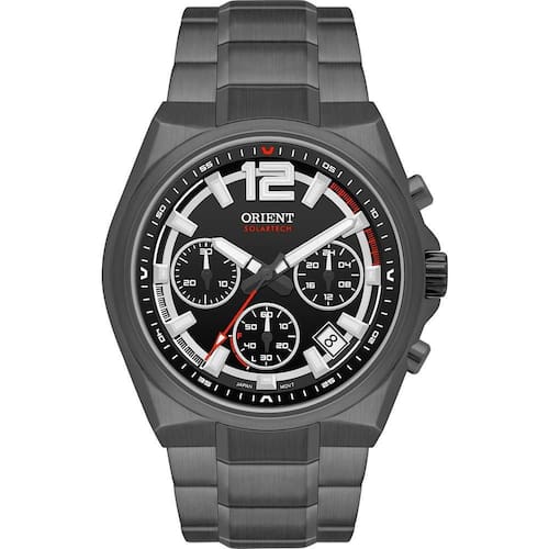 Relógio orient masculino ref: mpssc036 p2px solar cronógrafo black Descrição do produto: Vidro: cristal mineral Funções: calendario, analógico, solar, cronógrafo Resistencia à água: 50 m Características: com caixa aço inoxidável e pulseira aço inoxidável Diâmetro da caixa: 4,2 cm Alimentação do maquinário: energia solar Mostrador preto com número e detalhes em vermelho Fundo rosqueado Linha: orient solartech de 1 ano