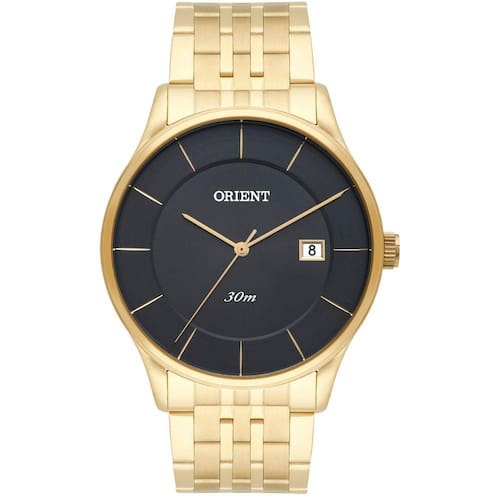 Relógio ORIENT SlimMgss1127 G1kxMasculino / Analógico / Grande Funções - Analógico- Calendário dia do mês Características - Analógico / Quartz- Coroa: Simples- Tampa posterior : Pressão- Resistência à água : 30m- Vidro : Cristal Mineral- Mostrador Preto- Material da caixa Slim : Aço Inox Dourado- Material da pulseira : Aço Inox Dourado Medidas - Diâmetro da caixa : 4,2 cm- Diâmetro do visor : 3,7 cm- Espessura da caixa : 0,6 cm Acompanha- Manual- Nota Fiscal- Embalagem Orient- Garantia de 1 ano