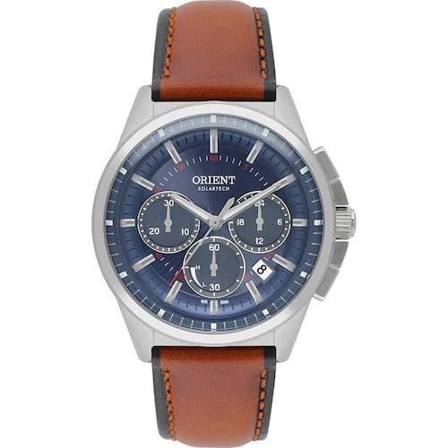 Relogio orient masculino solar cronografo de couro mbscc064 A luz como energia: O relógio solartech alia tecnologia e sustentabilidade. Com autonomia aproximada de quatro meses, o mecanismo solar transforma todas as luzes em energia para o seu funcionamento. Isso evita o descarte da bateria no meio ambiente. Medidas: - diâmetro da caixa: 44 mm / 4,4 cm medida sem a coroa - diâmetro da caixa: 47 mm medida com a coroa - espessura da caixa: 12,5 mm - comprimento da pulseira: 23 cm - peso: 81 gramas Características: Material da caixa: aço inox antialérgico Material da pulseira: couro Cor do aro: prata Cor da caixa: prata Cor da pulseira: marrom Cor do mostrador: azul Calendario: sim Cronografo: sim Fundo: rosqueado Mecanismo: analógico Vidro: cristal mineral Máquina: solar tech orient movido a luz solar ou luz ambiente Resistência à água: - wr: 50 metros 5atm - pode lavar as mãos: sim - pode usar na piscina: sim - pode usar em mergulho profundo: não - : 12 meses em toda a rede de assistências orient no brasil Fabricante: orient relógios da amazônia ltda Acompanha: Relógio Caixinha orient Certificado de