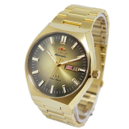 Mostrador: Degrade Linha: Orient 3 estrelas Vidro: Cristal Mineral Funções: Automático, Analógico, Calendário Duplo Pressão: 50 M Características: com caixa Aço inoxidável e pulseira Aço inoxidável Diâmetro da caixa: 4,4 cm Fundo rosqueado Estilo: Casual Alimentação do maquinismo: Mecânico (Automático) Garantia de 1 Ano