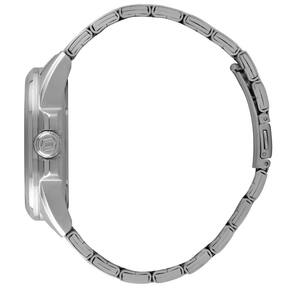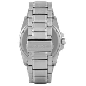 Vidro: Cristal Mineral Mostrador: Analógico Cor do Mostrador: Preto com detalhes em Azul Pulseira: Aço Inoxidável Caixa: Aço Inoxidável Fecho: Dobrável com botão Formato da Caixa: Redondo Tampa do Fundo: Rosqueada MEDIDAS Diâmetro da Caixa: 4,6 cm Espessura: 1,2 cm Comprimento pulseira: 26 cm RESISTÊNCIA À ÁGUA Resistente à Água: 50 M / 5 atm