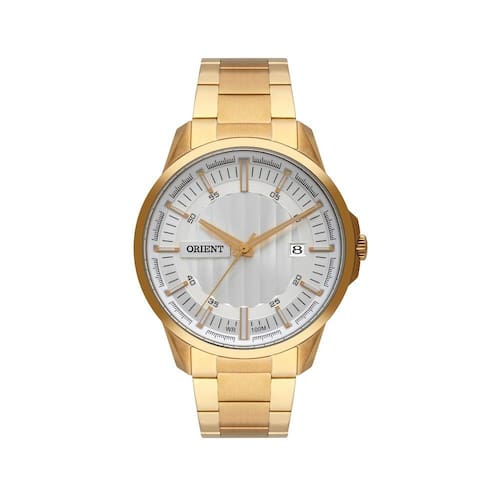 Relógio Masculino Orient MGSS1173 S1KX Caixa: Aço Dourado Pulseira: Aço Dourado Mostrador: Prateado Função: Calendário Resistência: 10 ATM Visor em Cristal Mineral Movimento Quartz Tamanho da Caixa: 42 mm Espessura da Caixa: 10 mm Tamanho da Pulseira: 21 cm Fecho dobrável Estado: Novo Acompanha caixa e manual.