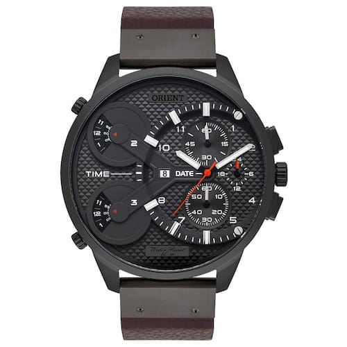 Características: com caixa Aço + IP Grey e pulseira em Couro