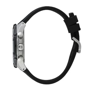 Mecanismo: quartz bateria Gênero: masculino Visor: azul Vidro: cristal mineral Funções: indicador de 24h, autonomia aproximada de 5 meses, solar, calendário, mostrador sunray, coroa rosqueada Prova d'água: 50m Características: com caixa em aço inoxidável e pulseira em silicone. Diâmetro da caixa: 45 mm